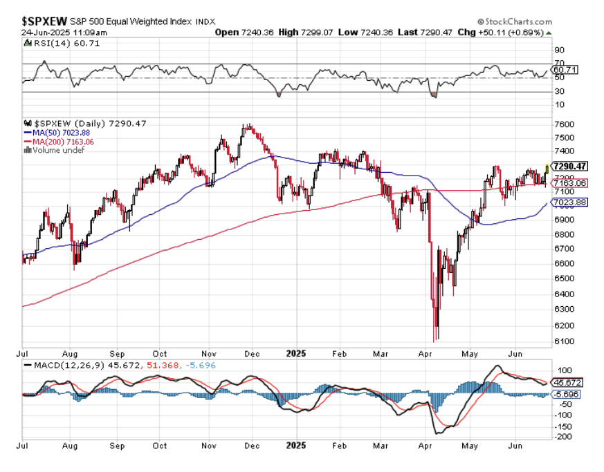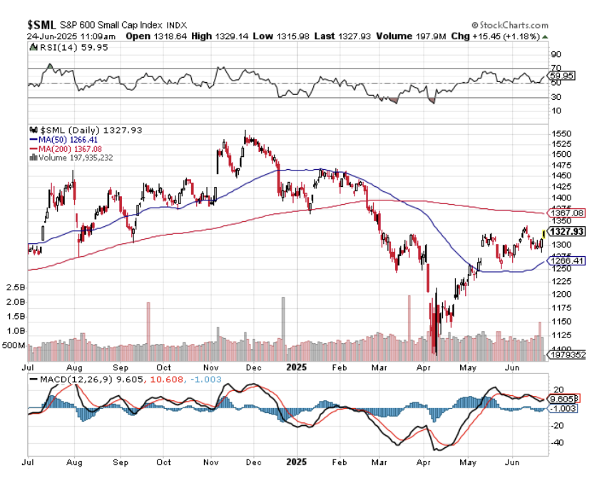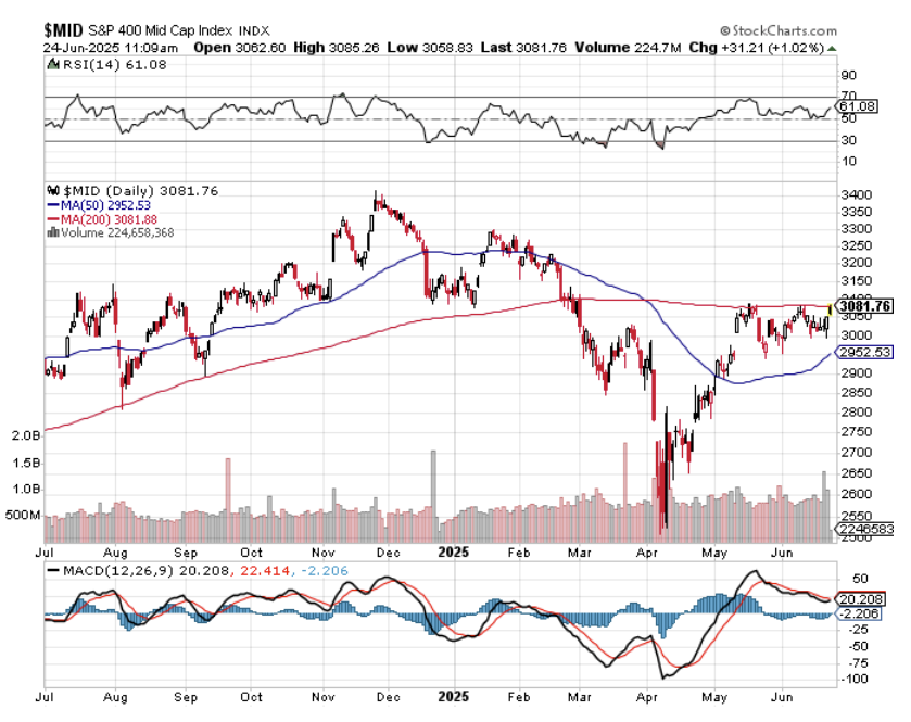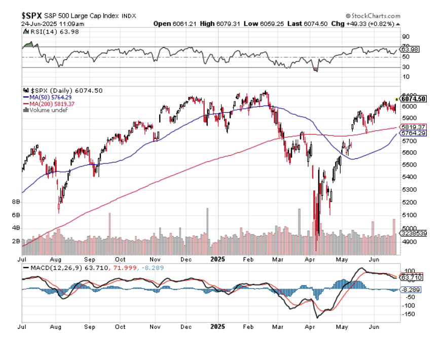 U.S. stocks. Bombing in the Middle East? What bombing in the Middle East? Make an announcement about imposing unexpectedly high tariffs on our global trading partners, and markets go nuts. Dismantle the nuclear apparatus of a global military foe – whatevs. Has the S&P 500 been grinding lower the last few trading days after peaking at 6059 the Wednesday before last? Sure, but stocks had a far bigger reaction to questions about the U.S. fiscal budget back in May versus what we are seeing today. If anything, today’s U.S. stock market looks like one methodically working its way through a healthy consolidation following a strong rally since early April and gearing up for setting new all-time highs by the time 2025 Q2 earnings season gets started in July.